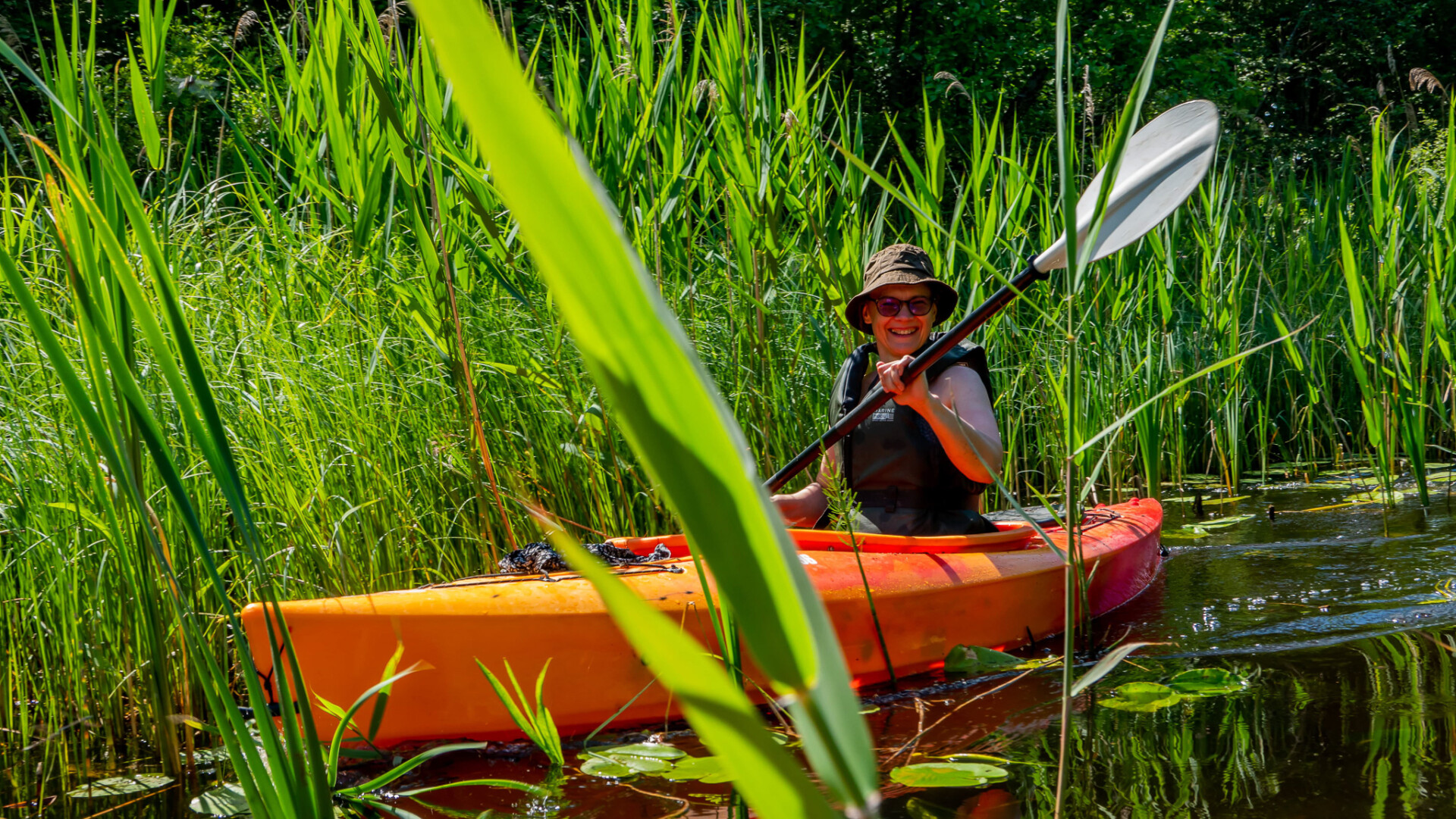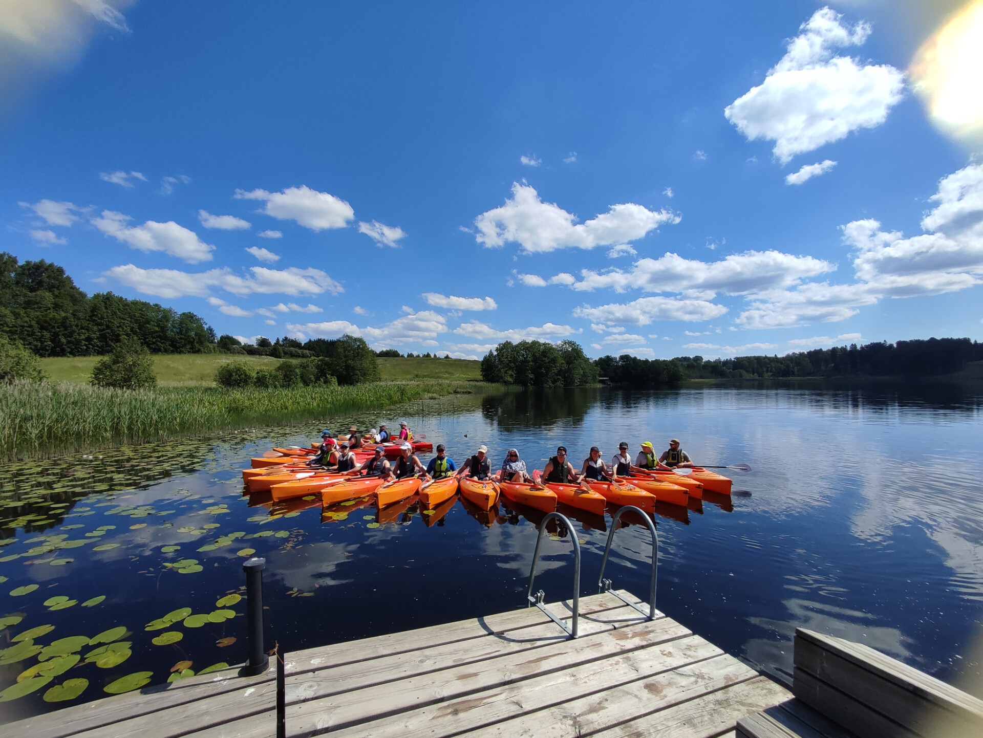 The owner of Nurmeotsa, grill chef Aare, welcomes everyone with hot coffee and a nice morning bite. After the briefing, we will move to Lake Vidrike, from where we will start a kayak tour passing through 12 Kooraste lakes, connecting streams and the river Pühajõgi. The surroundings are breathtakingly picturesque, all the lakes surrounded by small hills have different vibes and the streams are like jungle rivers hidden in lush nature.. almost ready for anacondas to appear.