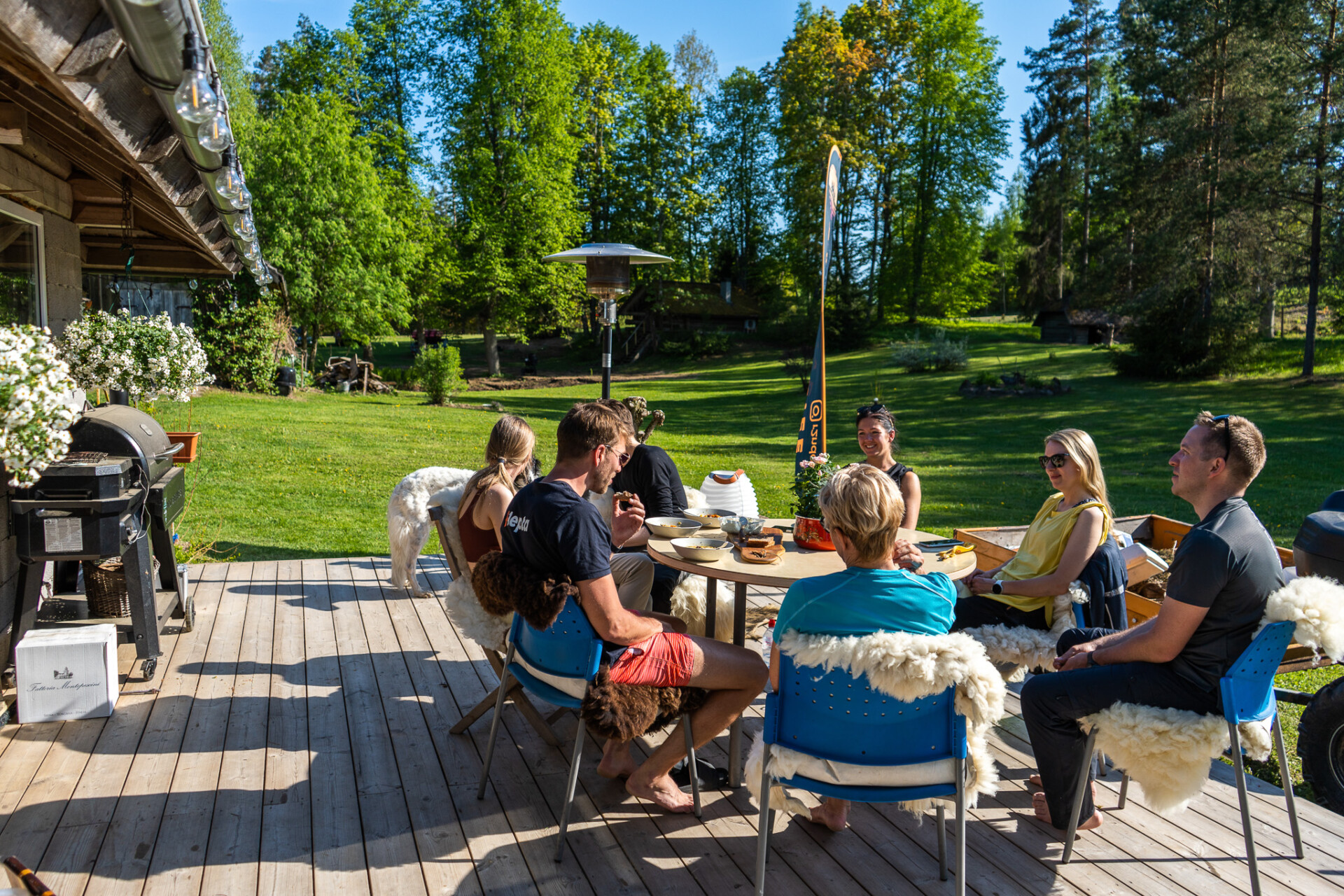 Clean and rested, we will soon sit around a big table in the beautiful summer kitchen to enjoy a wonderful three-course BBQ gourmet dinner and good company.